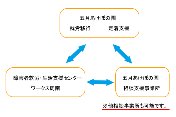 同じ法人内の「障害者就業・生活支援センター ワークス周南」「相談支援事業所」と密に連携を取れる環境で、支援に力を入れています。